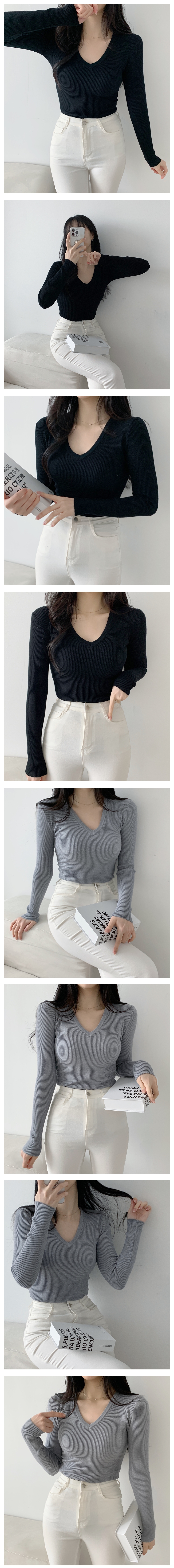 HOME > 여성의류 > 상의 > 브이넥 골지티셔츠 여성 기본 4컬러